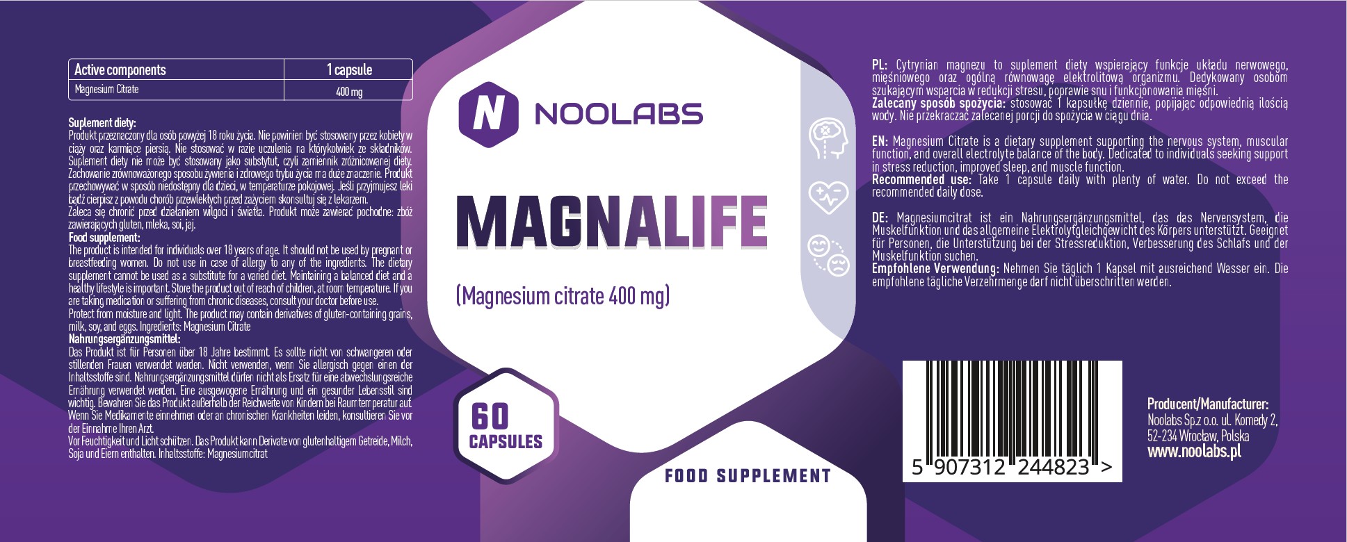 • ⚡ Cytrynian magnezu – wspiera produkcję energii, redukuje uczucie zmęczenia i poprawia wydolność.
