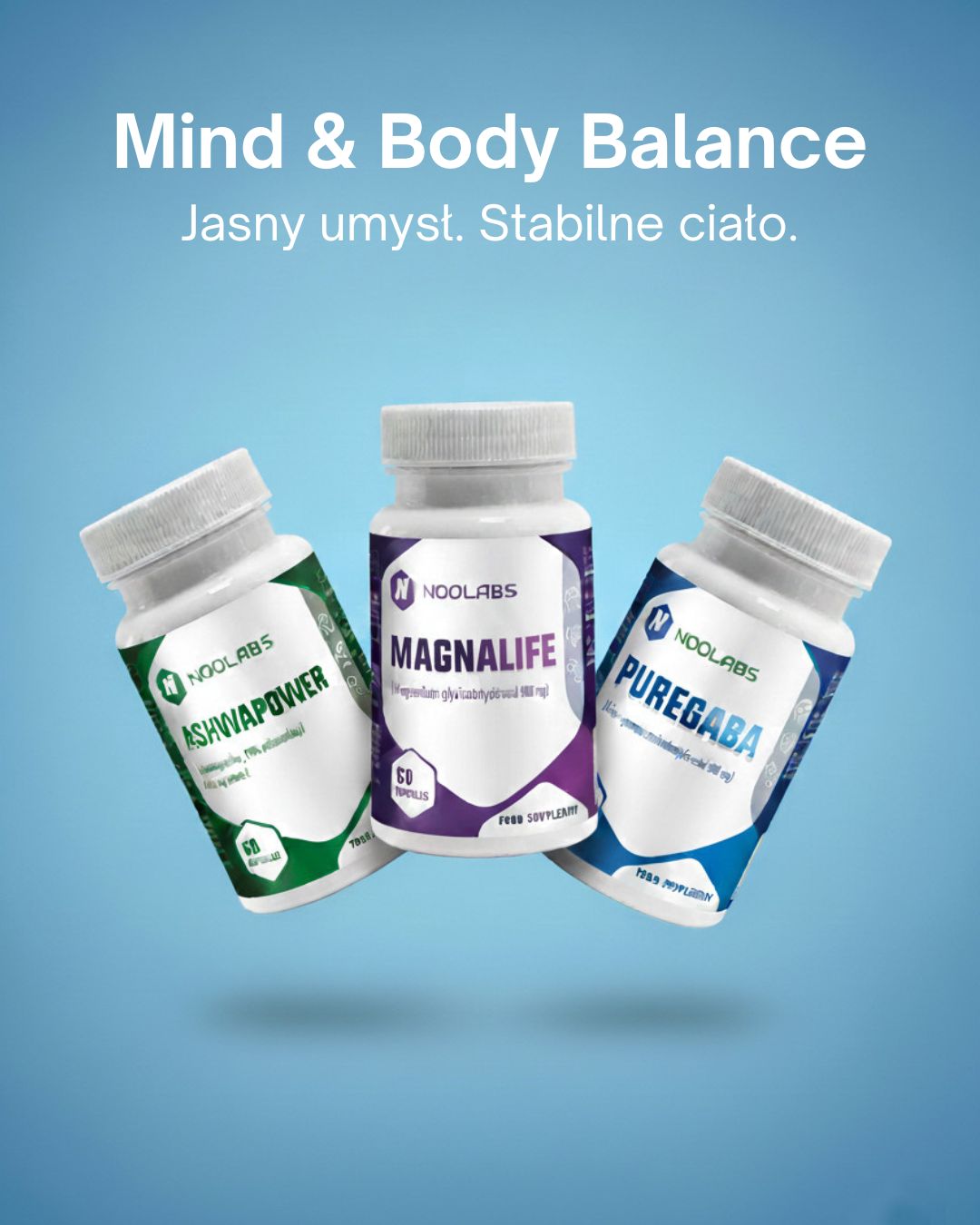 Zestaw „Mind & Body Balance” to kompleksowe wsparcie dla Twojego organizmu w stresującym świecie. Połączenie GABA, Ashwagandhy i Cytrynianu magnezu działa wielowymiarowo – koi nerwy, dodaje energii i pomaga utrzymać skupienie bez uczucia rozdrażnienia. To naturalny sposób na to, by ciało i umysł pracowały w tym samym rytmie – w harmonii.